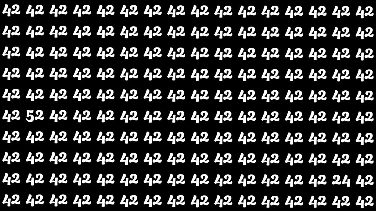 The number 52 can be found in the 6th row, 2nd column, while 24 is located in the 2nd row from the bottom, second column. Both numbers are subtly different from the surrounding 42s, making them stand out when you focus on the pattern.