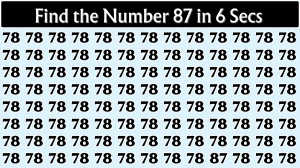 In this optical illusion challenge, your task was to find the number "87" hidden among many repetitions of the number "78." Because these numbers share the same digits but in reverse order, spotting the "87" requires close attention to detail and quick scanning.