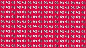 This optical illusion challenges viewers to quickly spot the numbers 36 and 66 hidden among a pattern filled with the number 63. At first glance, the entire image seems to be made up of only the number 63, creating visual confusion.