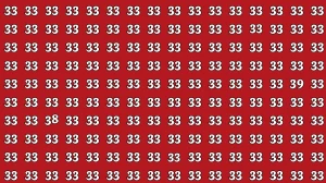 In this optical illusion challenge, the numbers 38 and 39 are cleverly hidden among a pattern of 33s, making them difficult to spot at first glance. However, with careful observation, you can locate them.