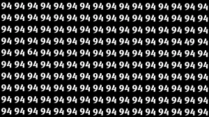 In this optical illusion puzzle, the task is to quickly spot the hidden numbers 64 and 49 among a grid full of repeating 94s. At first glance, the entire image looks uniform, which makes the odd numbers blend in with the rest.