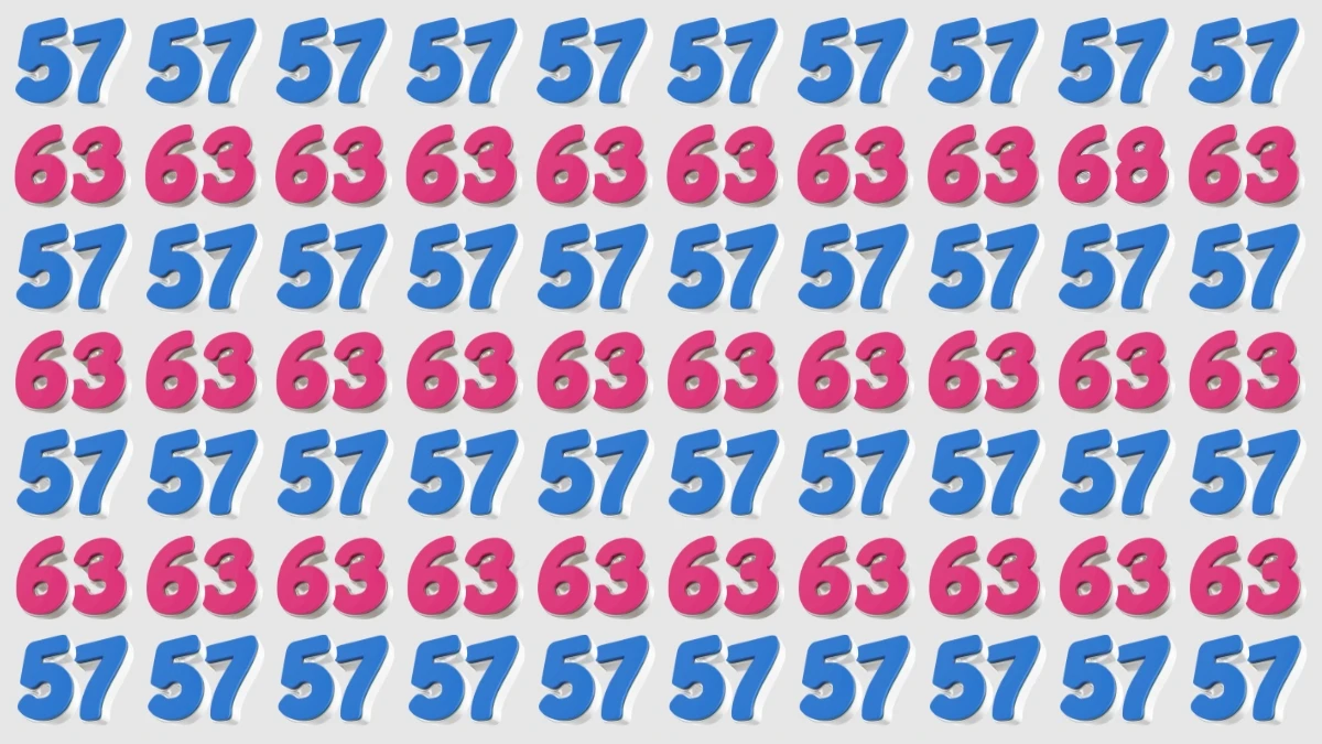 Ready for a brain-teasing challenge? In this optical illusion, your task is to spot the number "68" hidden among multiple instances of "57" and "63." The catch? You only have 9 seconds to find it!