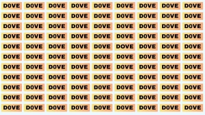 In this optical illusion challenge, your task is to find the word “DOVE” hidden among numerous instances of “D0VE”, where the letter “O” is replaced with the number “0” a clever trick that makes the odd word hard to spot.