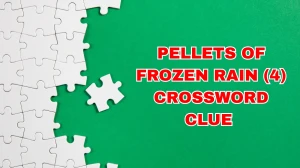 The clue asks for a 4-letter word describing “pellets of frozen rain.” The answer, HAIL, fits neatly
