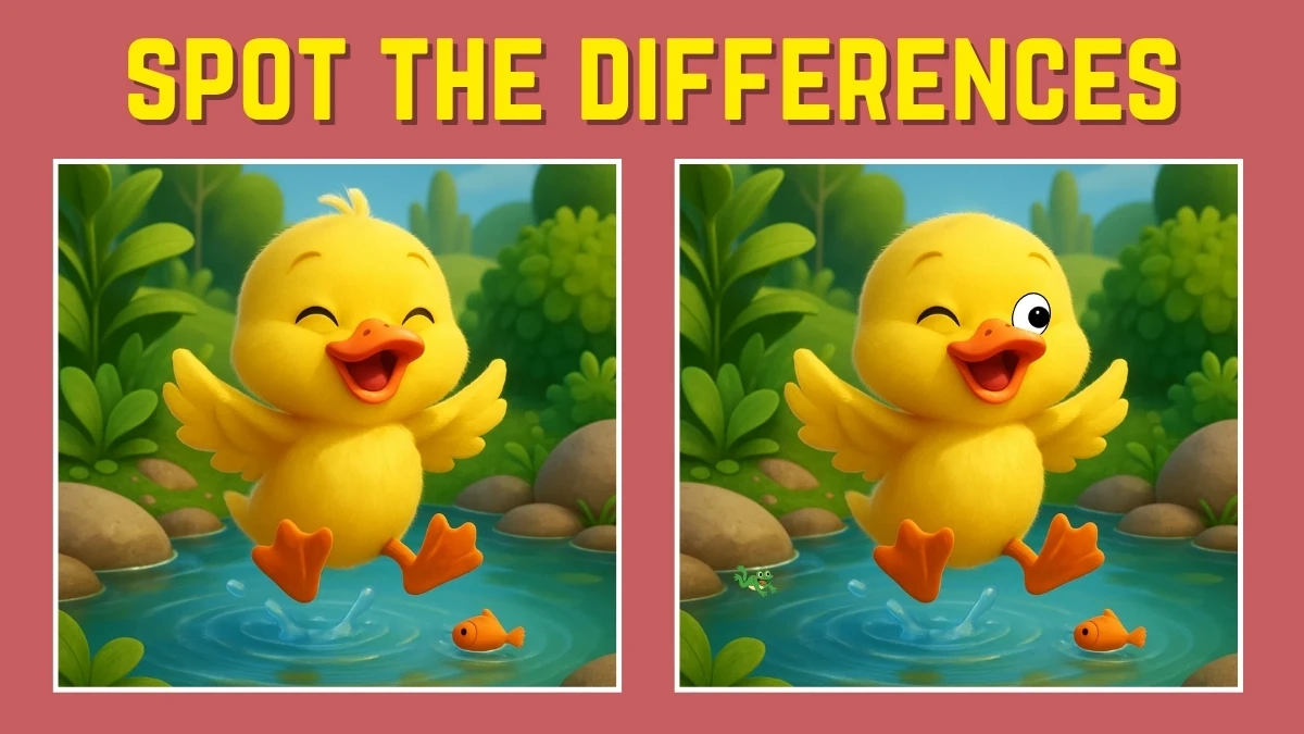 Third, there is an extra feather tuft on top of the duck’s head in the right image that is missing in the left. Finding all three differences quickly demonstrates excellent attention to detail and sharp visual comparison skills.