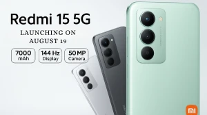 "The Redmi 15 5G is set to launch in India on August 19th. It comes equipped with a 7000mAh silicon-carbon battery and boasts a sleek design, making it a powerful yet stylish addition to the smartphone market."