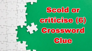 The answer to the crossword clue "Scold or criticise" with 6 letters is "BERATE". Berate means to scold or criticize someone angrily, often in a harsh or severe manner. It typically refers to expressing disapproval in a forceful way, such as reprimanding someone for a mistake or bad behavior.