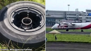 One of the officials said that one rear right wheel of the aircraft was missing.
