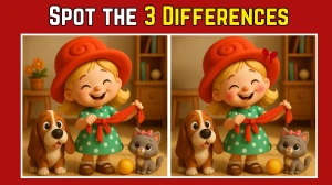 The differences in these images are cleverly disguised in the colors, objects, and small features of the scene. For example, one of the differences involves the girl’s hat, another might be related to the cat’s bow, and there’s a third variation in the background elements. This puzzle not only tests your ability to notice minor changes but also sharpens your cognitive and visual processing skills. Did you find all three differences in time? It’s a fun and quick way to exercise your brain!