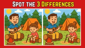 This Spot the Difference Picture Puzzle IQ Test challenges your attention to detail and visual perception. In this puzzle, you’re presented with two seemingly identical camping images, but there are three subtle differences between them.