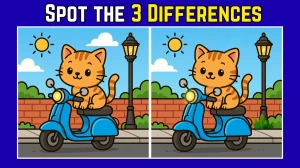 This "Spot the Difference" challenge puts your attention to detail and quick thinking to the test. In this puzzle, you're asked to find 3 differences between two images of a cute cat sitting on a scooter. While the two images may look nearly identical at first glance, subtle changes have been made, and your job is to spot them before the 7-second timer runs out.