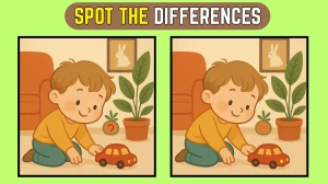 In this "Spot the Difference" challenge, the task is to find the 3 differences in an image of a boy playing with a toy car within just 8 seconds. At first glance, the two images may look nearly identical, but upon closer inspection, you’ll notice subtle changes between them. The challenge lies in quickly scanning the details, such as the boy's position, the toy car, or the background, to identify what has been altered. This puzzle tests your attention to detail, focus, and ability to spot even the most minor discrepancies in a short amount of time. The clock is ticking, so speed and precision are key only the most observant will be able to spot all three differences before the timer runs out!