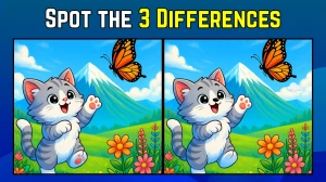 In this exciting "Spot the Difference" challenge, you are tasked with finding three differences between two seemingly identical cat images within just 9 seconds.