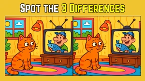 These puzzles are great for testing your attention to detail, concentration, and visual perception skills. At first glance, the two images may look identical, but if you focus closely on the cat, the TV, and the surroundings, you’ll notice slight changes that set them apart. Can you spot all three differences before the time runs out?