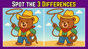 Spot the Difference: Within 9 Seconds Spot The 3 Differences in this Cowboy Teddy Image