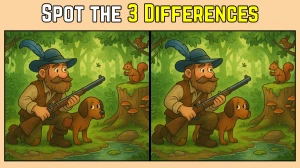 Your mission: to find 3 subtle differences between two seemingly identical images of the hunter and his dog within just 9 seconds. It might sound simple, but the differences are more difficult to spot than you think! Ready to take the challenge?
