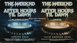The Weeknd’s 2026 tour is a monster — Latin America for spring, Europe for summer, mega arenas, and packed setlists. He’s flying in with Anitta for the Latin American dates and Playboi Carti for Europe. There’s something magical about watching a stadium light up when Starboy drops, especially alongside thousands of strangers who all look like they’d gladly trade their kidney for a front-row ticket.