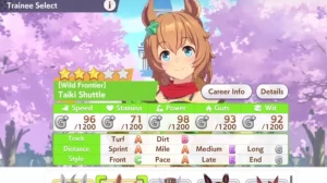 | Aptitudes | Turf (A), Medium (A), Long (A), Dirt (G), Sprint (G), Mile (G) |