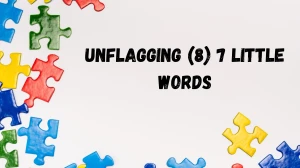 - The adjective "unflagging" followed by a letter count represents a classic straightforward clue format, signaling solvers to focus on direct synonyms rather than wordplay or hidden meanings.