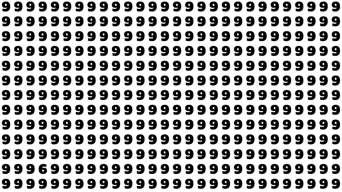Focus on the image and try to find the one ‘6’ hidden among dozens of ‘9’s.