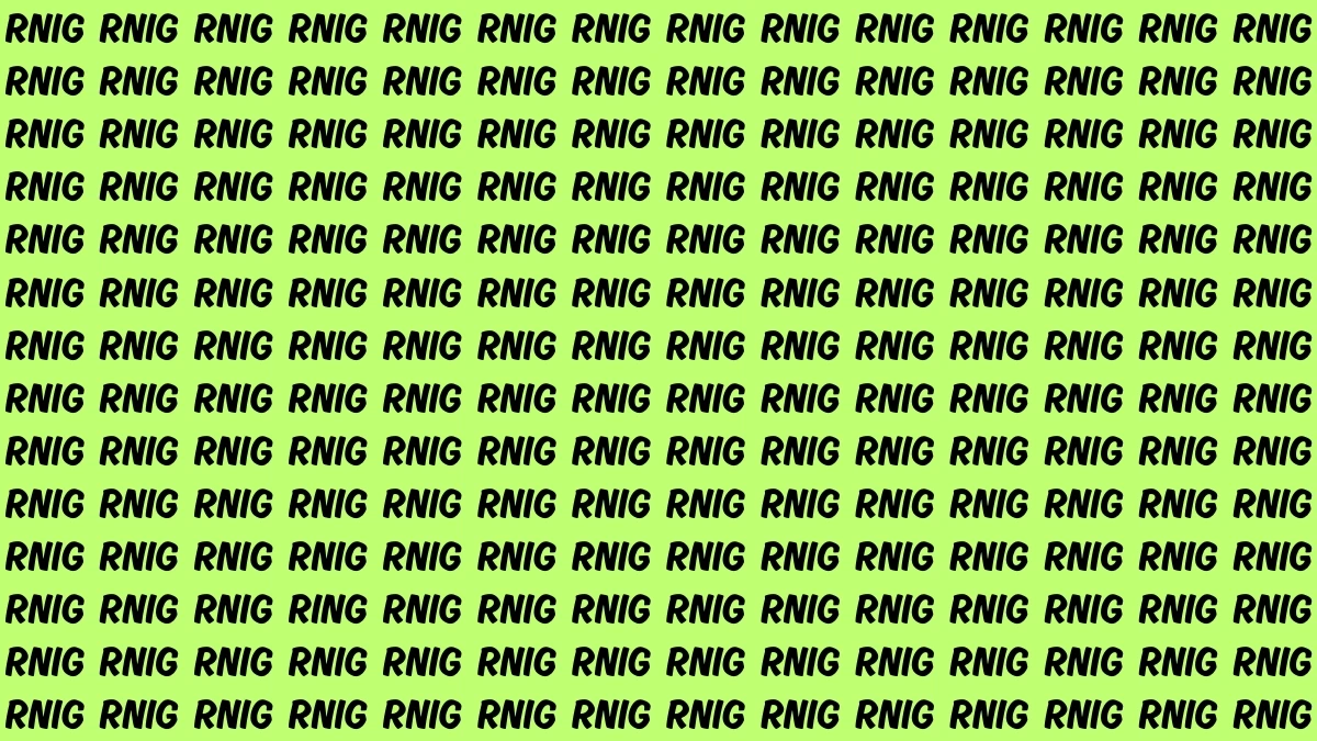 This quick visual illusion challenges your ability to spot subtle differences in a split second. In this puzzle, you're presented with the letters RNIG, but hidden among them is the word RING. Your task is to spot the word RING in just 6 seconds. While the letters may appear jumbled, the correct arrangement forms the hidden word, and your job is to identify it before time runs out.