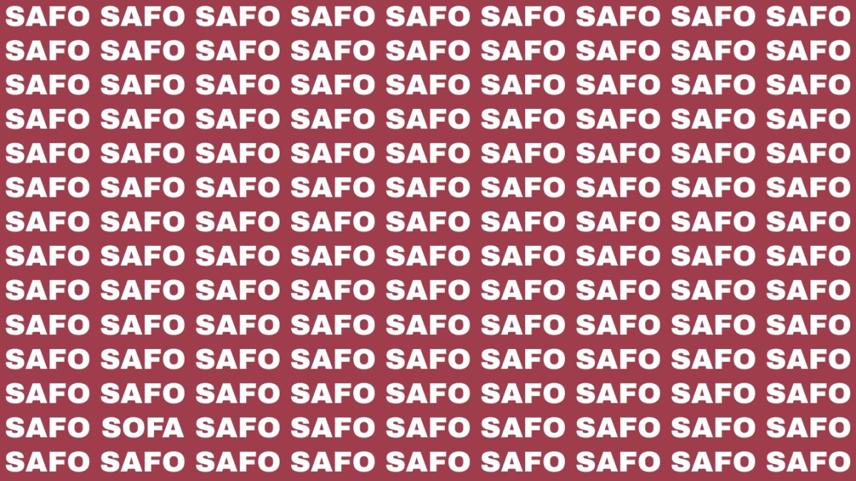 This visual illusion challenges your attention to detail and cognitive speed. In this puzzle, you're shown a series of letters that all seem almost identical at first glance: 'SAFO.' However, hidden within them is the word 'SOFA.'