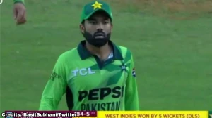 Hasan's knock on Sunday included three sixes — two of them in what turned out to be the last over of Pakistan's innings after more rain. Hussain Talat got 31 off 32 balls but most Pakistan batters were much slower, including captain Mohammad Rizwan who was trapped lbw by Gudakesh Motie for a 38-ball 16.
