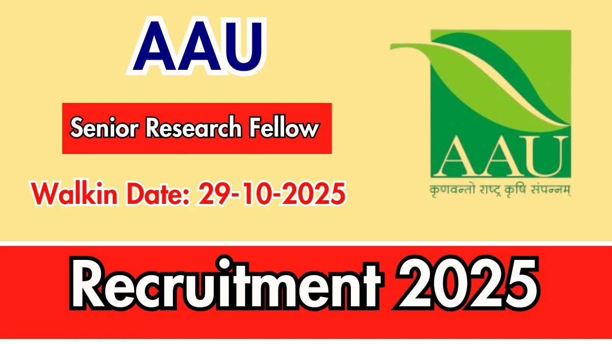 Anand Agricultural University (AAU) Recruitment 2025 for 01 posts of Senior Research Fellow. Candidates with M.Sc Can attend the walkin. The Walk-in on 29-10-2025. For detailed information please visit AAU official website, aau.ac.in.