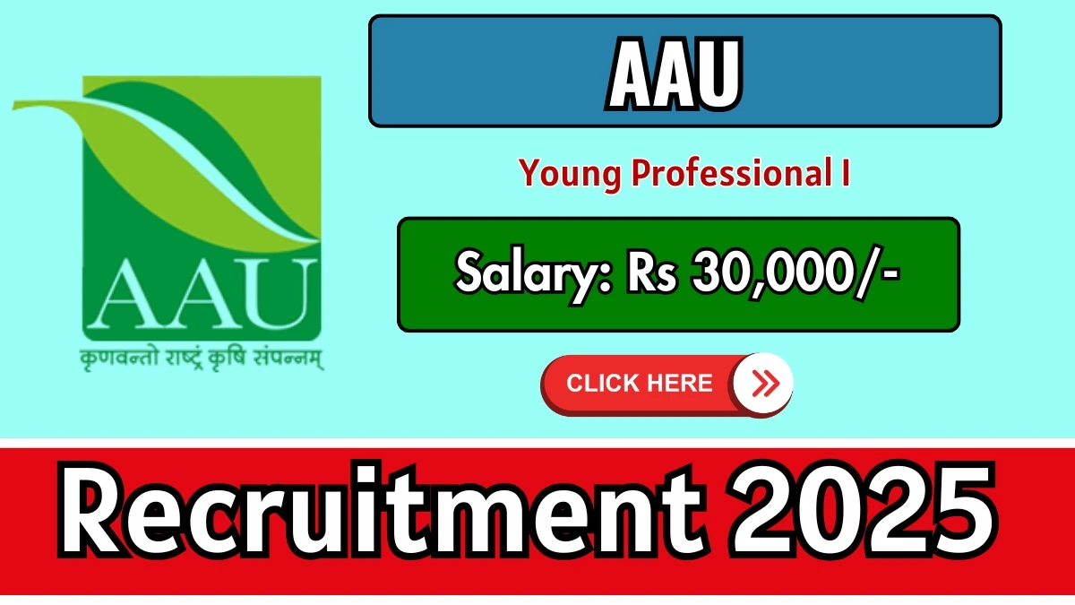 Anand Agricultural University (AAU) Recruitment 2025 for 04 posts of Young Professional I. Candidates with B.Sc, B.Tech/B.E Can attend the walkin. The Walk-in on 30-10-2025. For detailed information please visit AAU official website, aau.in.