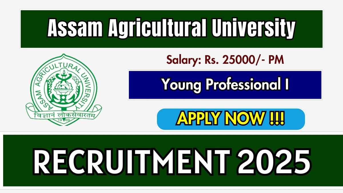 Assam Agricultural University (AAU) Recruitment 2025 for 01 posts of Young Professional I. Candidates with B.Sc Can attend the walkin. The Walk-in on 08-01-2026. For detailed information please visit AAU official website, aau.ac.in.