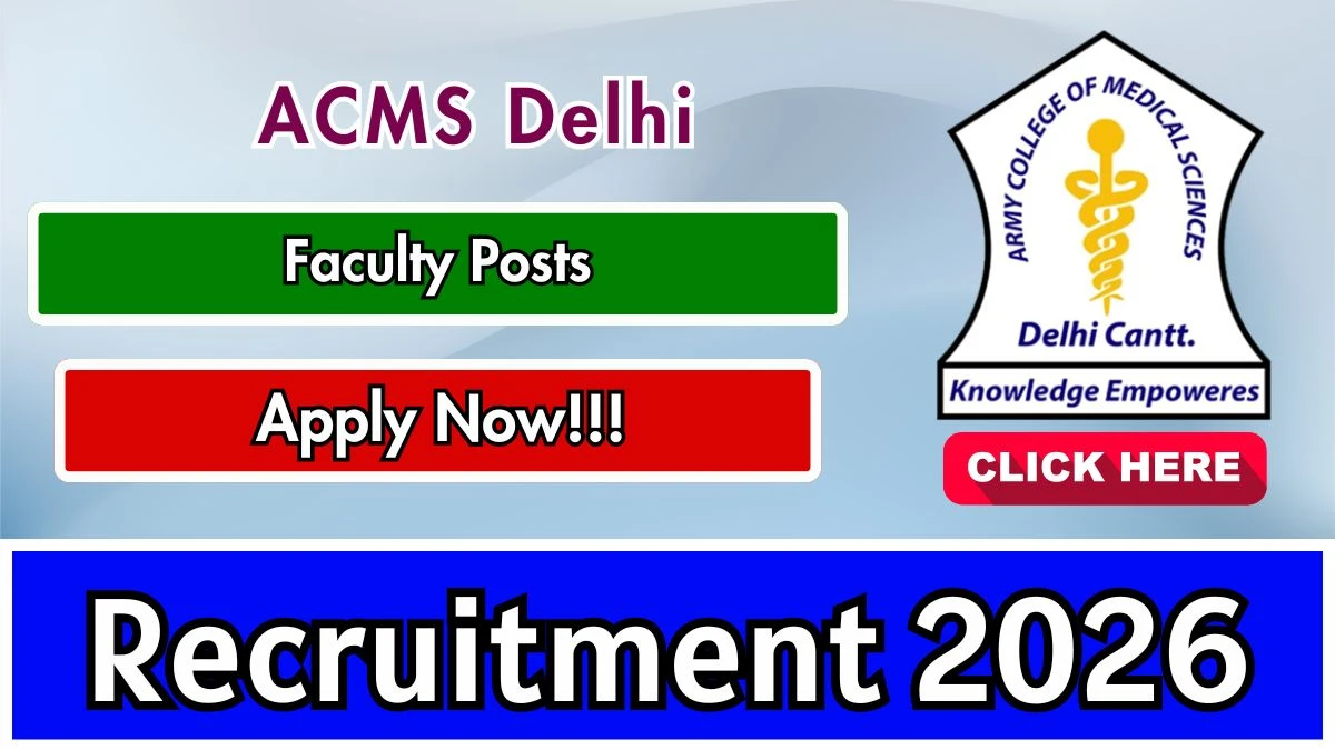 Army College of Medical Sciences (ACMS) Recruitment 2026: Army College of Medical Sciences has released the official notification for 12 Faculty Positions posts, inviting applications from eligible candidates. This recruitment provides an excellent opportunity for candidates seeking government jobs.