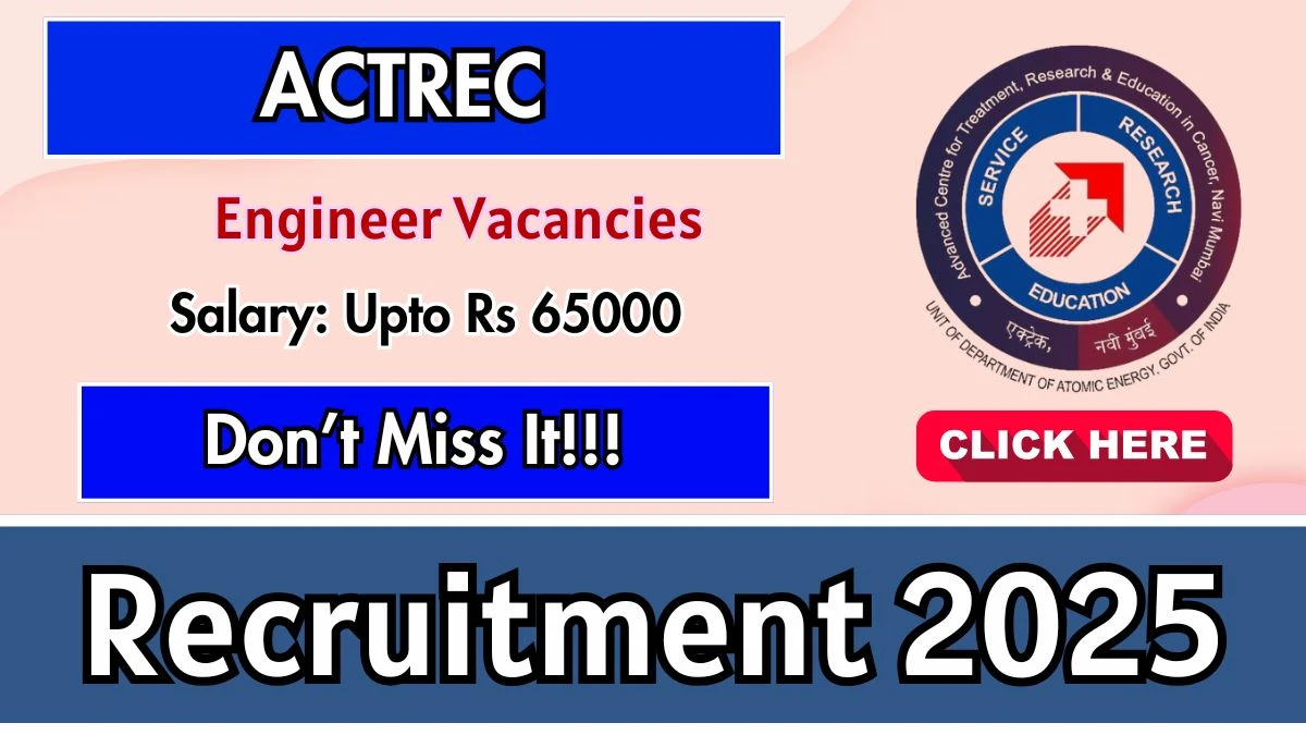 Advanced Centre for Treatment Research and Education in Cancer (ACTREC) Recruitment 2025 for posts of Engineer. Candidates with B.Tech/B.E Can attend the walkin. The Walk-in interview on 19-11-2025. For detailed information please visit ACTREC official website, actrec.gov.in.