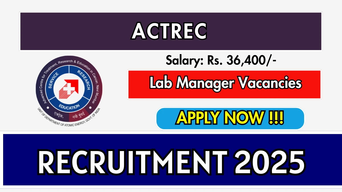 Advanced Centre for Treatment Research and Education in Cancer (ACTREC) Advt No ACTREC/ADVT-199/2025 Lab Manager Vacancy 2025 |