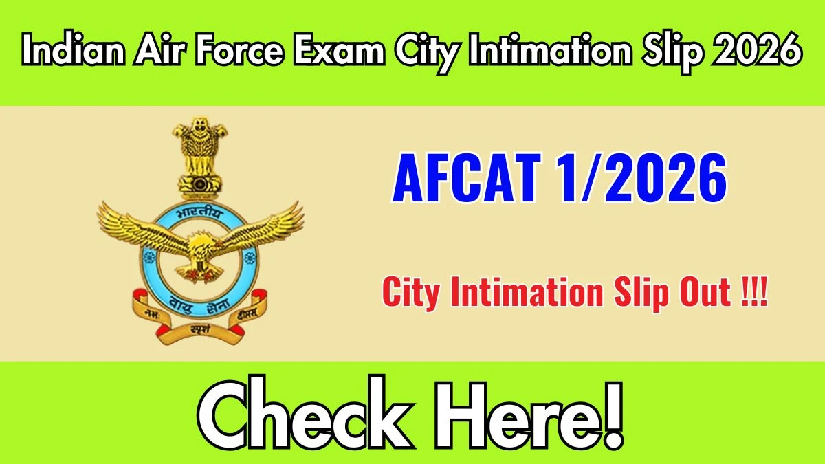 Indian Air Force (IAF) has officially released the City Intimation Slip 2026 for AFCAT 1/2026 examination. Candidates appearing for AFCAT exam can now check their exam city slip via registered email/mobile or official website afcat.cdac.in. The city intimation slip contains crucial information about allotted exam city/district, exam date, reporting time, and instructions. This document helps candidates plan their travel and accommodation arrangements before the admit card release. In this article, we provide the direct access information, step-by-step instructions, and all important details about AFCAT City Intimation Slip 2026.
