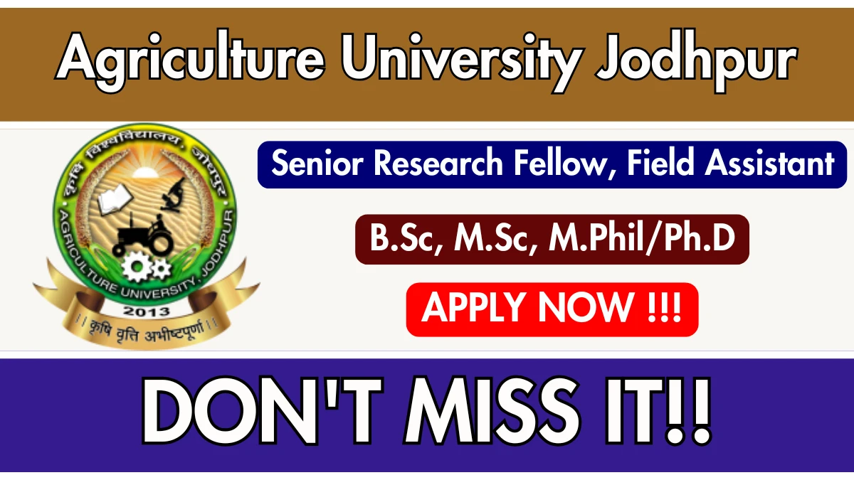 Agriculture University Jodhpur Senior Research Fellow, Field Assistant Recruitment 2025 Vacancy Details |