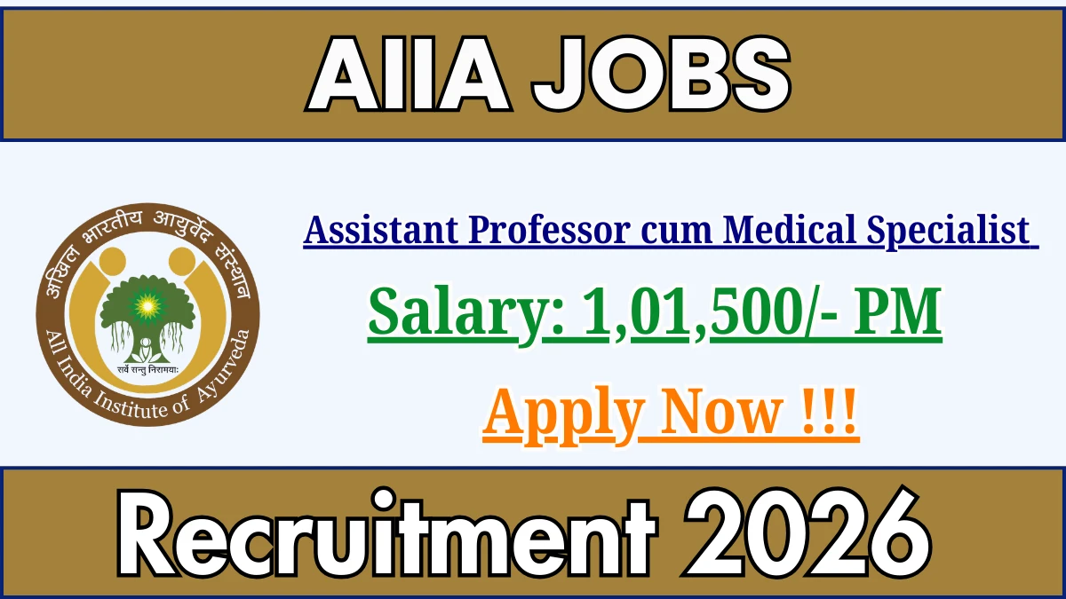 All India Institute of Ayurveda (AIIA) Recruitment 2026 for 01 posts of Assistant Professor cum Medical Specialist. Candidates with MS/MD Can attend the walkin. The Walk-in on 10-03-2026. For detailed information please visit AIIA official website, aiia.gov.in.