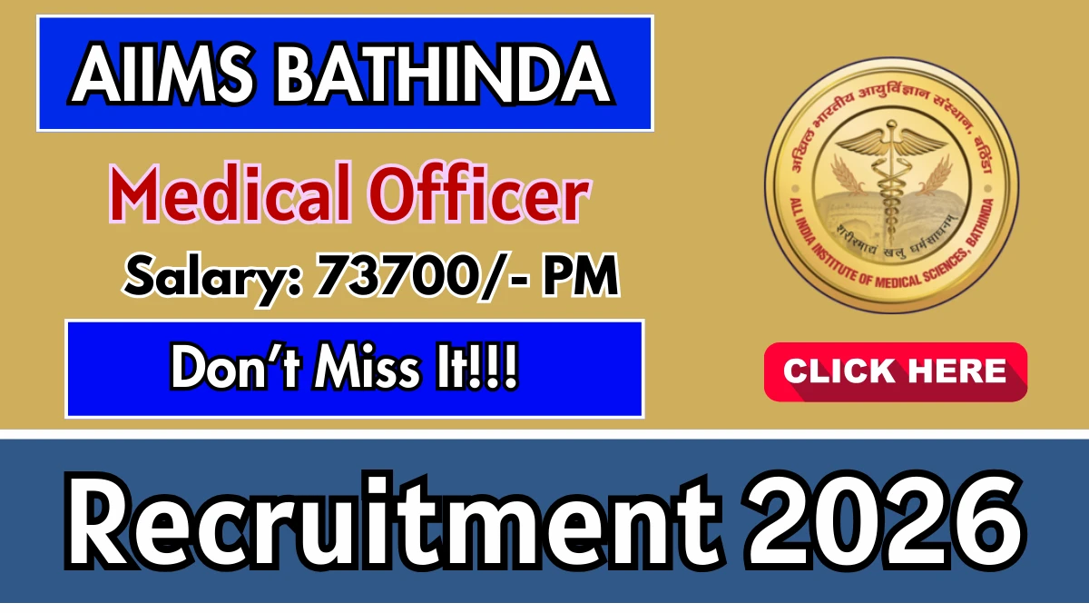 All India Institute of Medical Sciences Bathinda (AIIMS Bathinda) has released an official notification for the recruitment of 03 Medical Officer Posts. Interested and eligible candidates can apply Online through the official AIIMS Bathinda website. The last date to submit the application form is 16-02-2026. In this article, you’ll find the AIIMS Bathinda Medical Officer Posts recruitment details, including eligibility criteria, age limit, salary structure, selection process, application steps, and direct links to the official notification and Online application form.