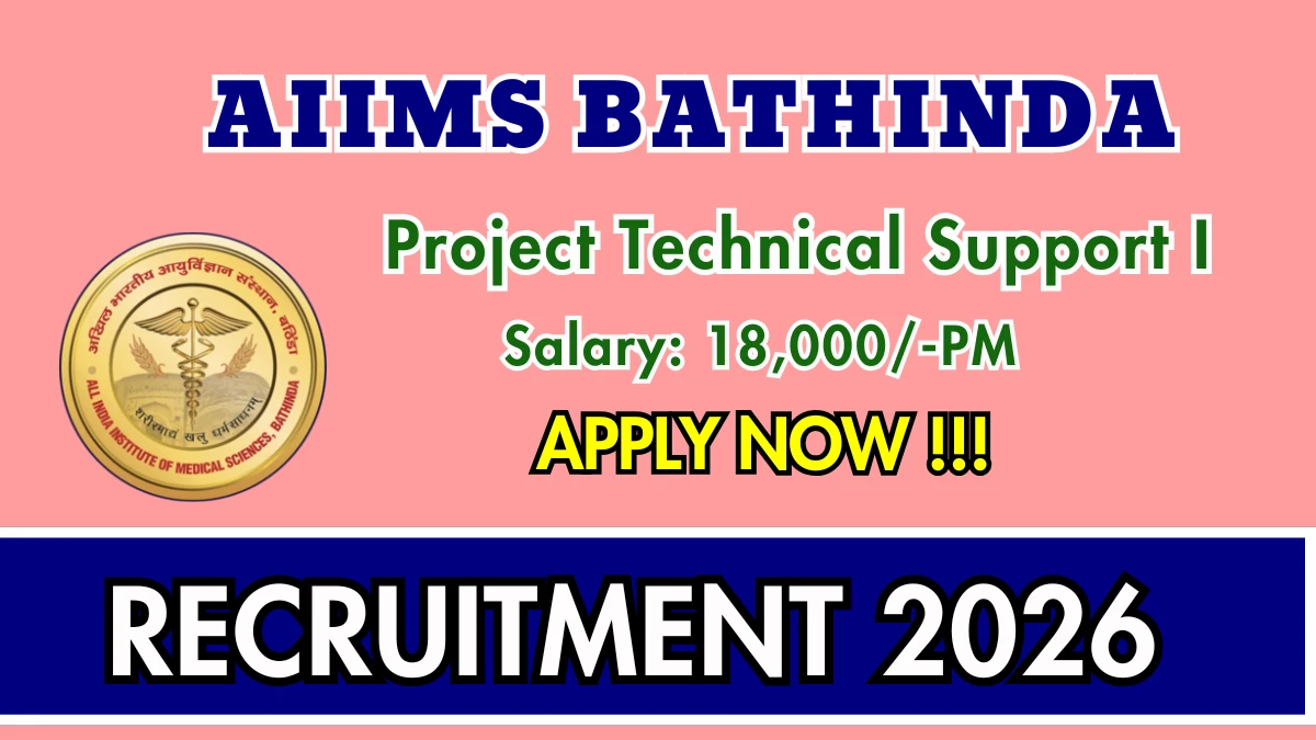 All India Institute of Medical Sciences Bathinda (AIIMS Bathinda) Recruitment 2026 for 01 posts of Project Technical Support I. Candidates with Diploma, ITI, 10TH Can attend the walkin. The Walk-on 25-02-2026. For detailed information please visit AIIMS Bathinda official website, aiimsbathinda.edu.in.