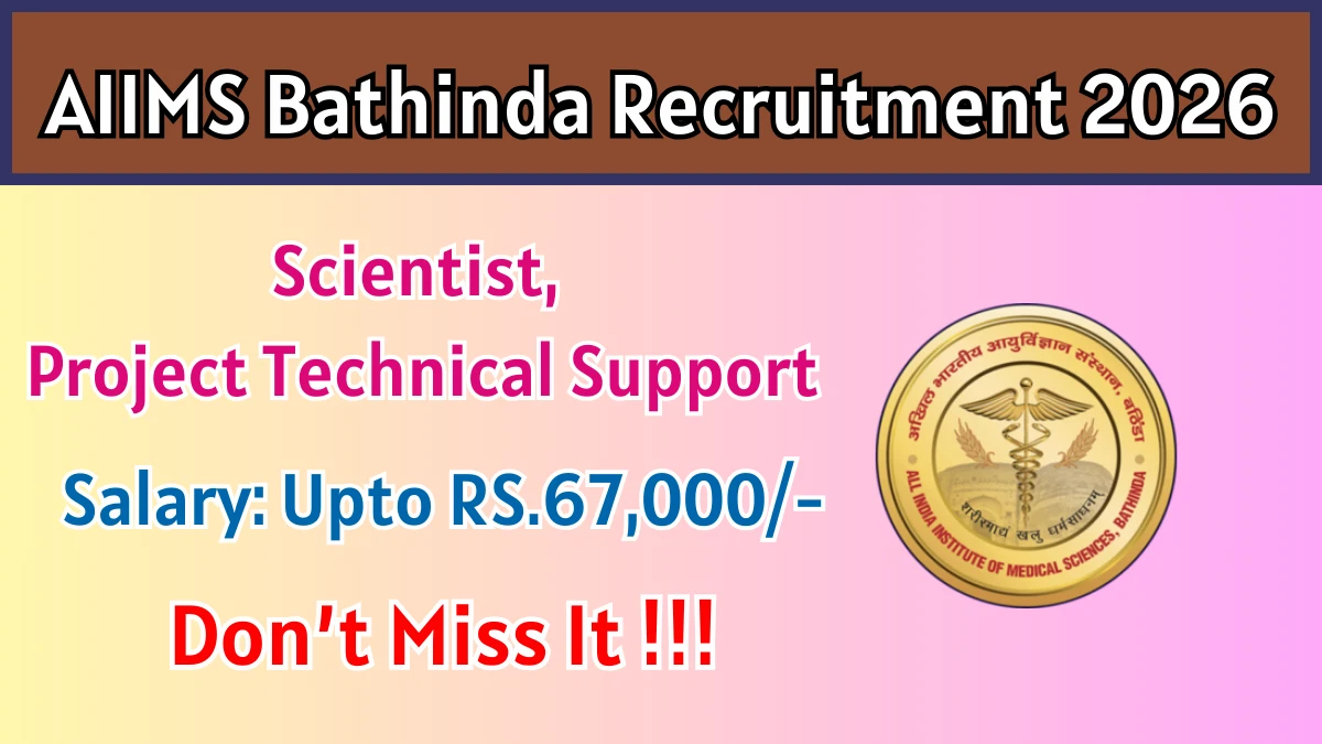All India Institute of Medical Sciences Bathinda (AIIMS Bathinda) Recruitment 2025 for 02 posts of Scientist, Project Technical Support. Candidates with B.Tech/B.E, Diploma Can attend the walkin. The Walk-in on 04-02-2026. For detailed information please visit AIIMS Bathinda official website, https://aiimsbathinda.edu.in.