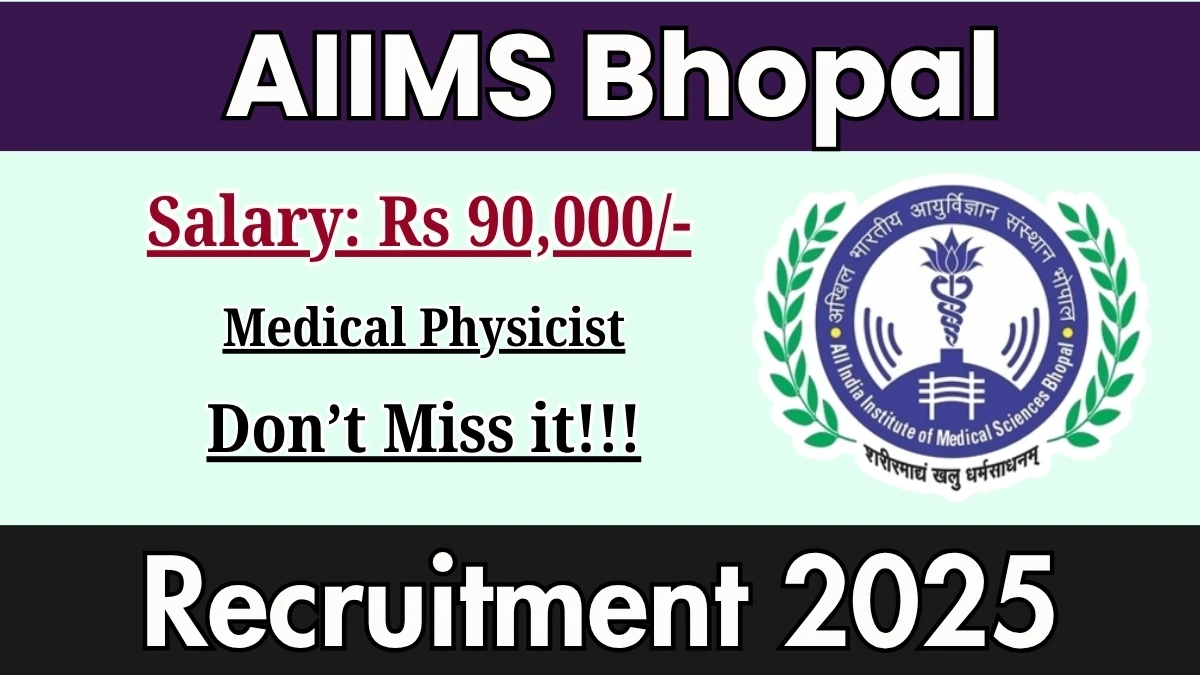 All India Institute of Medical Sciences Bhopal (AIIMS Bhopal) has released an official notification for the recruitment of 02 Medical Physicist Posts. Interested and eligible candidates can apply Offline through the official AIIMS Bhopal website. The last date to submit the application form is 25-10-2025. In this article, you’ll find the AIIMS Bhopal Medical Physicist Posts recruitment details, including eligibility criteria, age limit, salary structure, selection process, application steps, and direct links to the official notification and Offline application form.