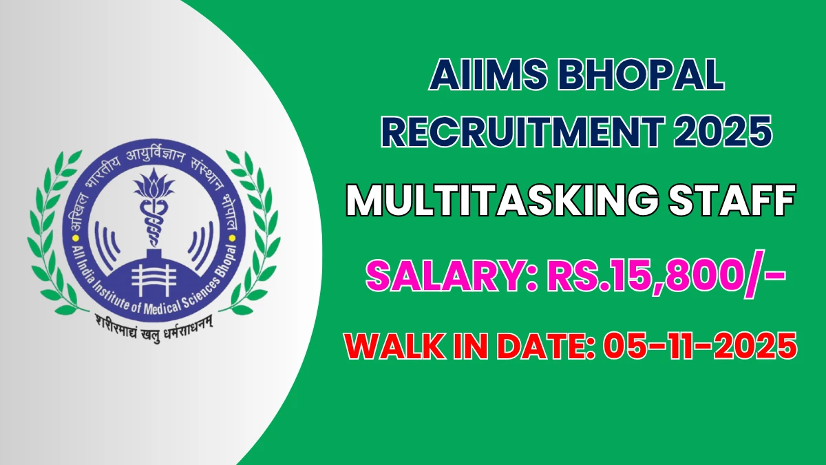 All India Institute of Medical Sciences Bhopal (AIIMS Bhopal) Recruitment 2025 for 01 posts of Multitasking Staff. Candidates with 12TH Can attend the walkin. The Walk-in on 05-11-2025. For detailed information please visit AIIMS Bhopal official website, aiimsbhopal.edu.in.