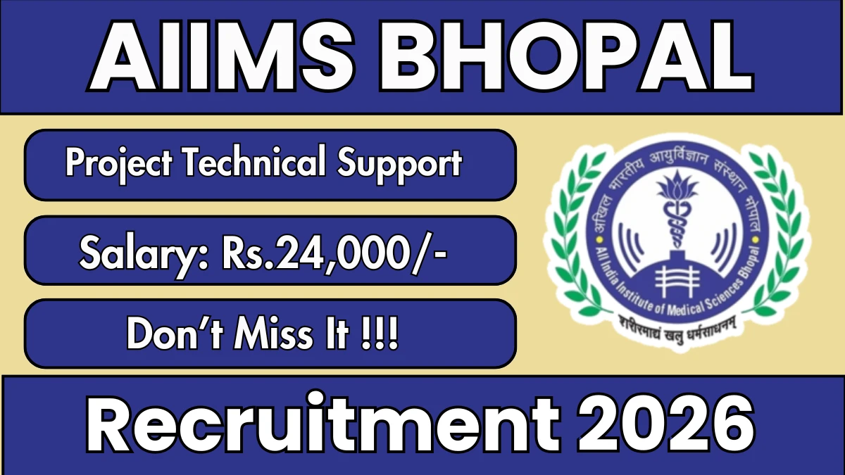 All India Institute of Medical Sciences, Bhopal (AIIMS Bhopal) Recruitment 2026 for 3 posts of Project Technical Support-II & Project Technical Support-III. Candidates with Diploma or Graduate degree Can Apply Online. The last date to apply online is 20-03-2026. The candidate shall apply online through AIIMS Bhopal official website.