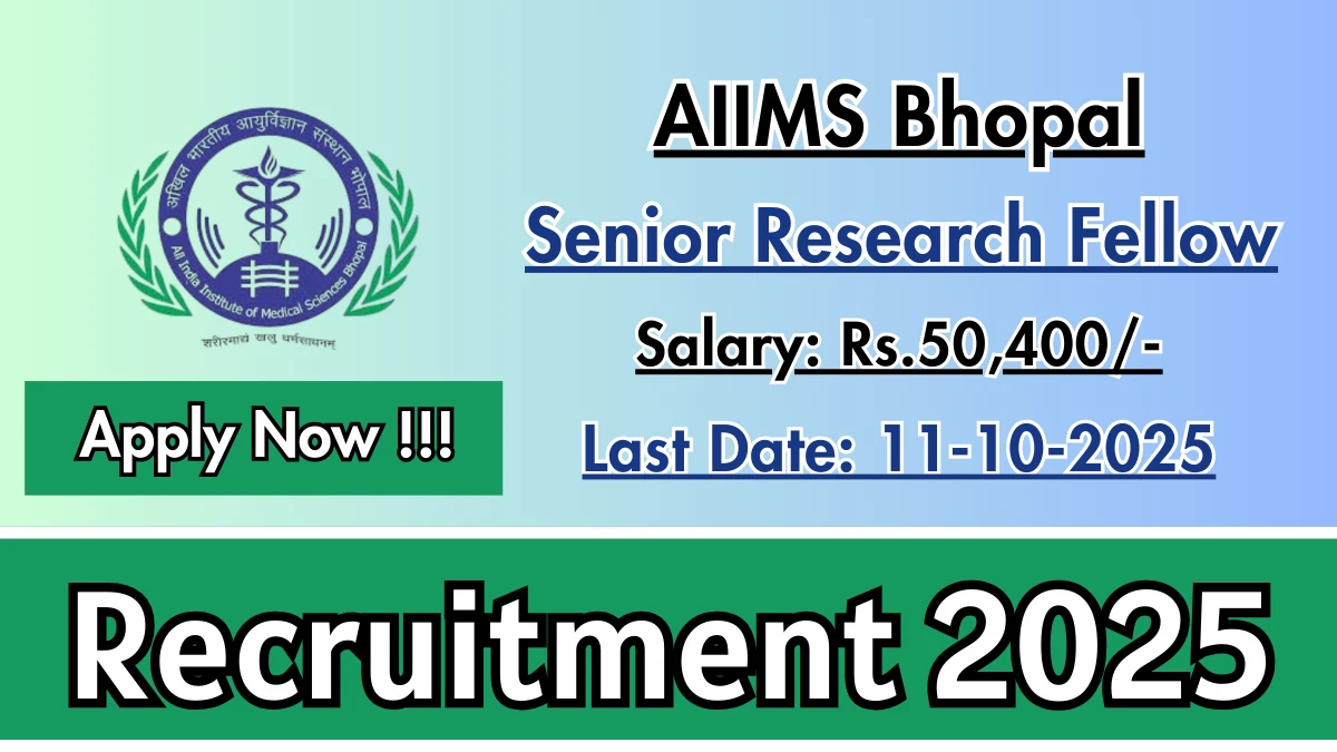 The AIIMS Bhopal Senior Research Fellow Recruitment 2025 Notification PDF has been released on 15-09-2025 at aiimsbhopal.edu.in. Check the complete job details, vacancy, age limit, application fee, selection process and how to apply from the article. You can Check all Latest Sarkari Result Updates of All Central Government Jobs and State Government Jobs.