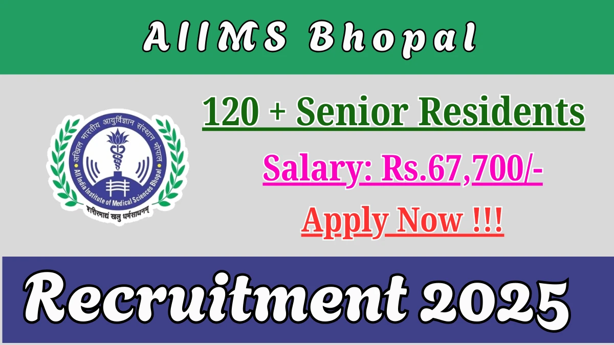 All India Institute of Medical Sciences Bhopal (AIIMS Bhopal) has released an official notification for the recruitment of 128 Senior Residents Posts. Interested and eligible candidates can apply Online through the official AIIMS Bhopal website. The last date to submit the application form is 15-01-2026. In this article, you’ll find the AIIMS Bhopal Senior Residents Posts recruitment details, including eligibility criteria, age limit, salary structure, selection process, application steps, and direct links to the official notification and Online application form.