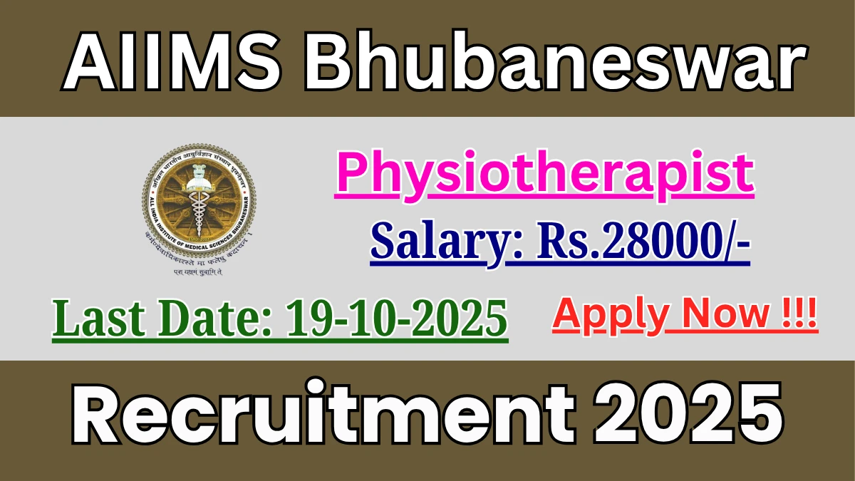 All India Institute of Medical Sciences Bhubaneswar (AIIMS Bhubaneswar) has released an official notification for the recruitment of 01 Physiotherapist Posts. Interested and eligible candidates can apply Offline through the official AIIMS Bhubaneswar website. The last date to submit the application form is 19-10-2025. In this article, you’ll find the AIIMS Bhubaneswar Physiotherapist Posts recruitment details, including eligibility criteria, age limit, salary structure, selection process, application steps, and direct links to the official notification and Offline application form.