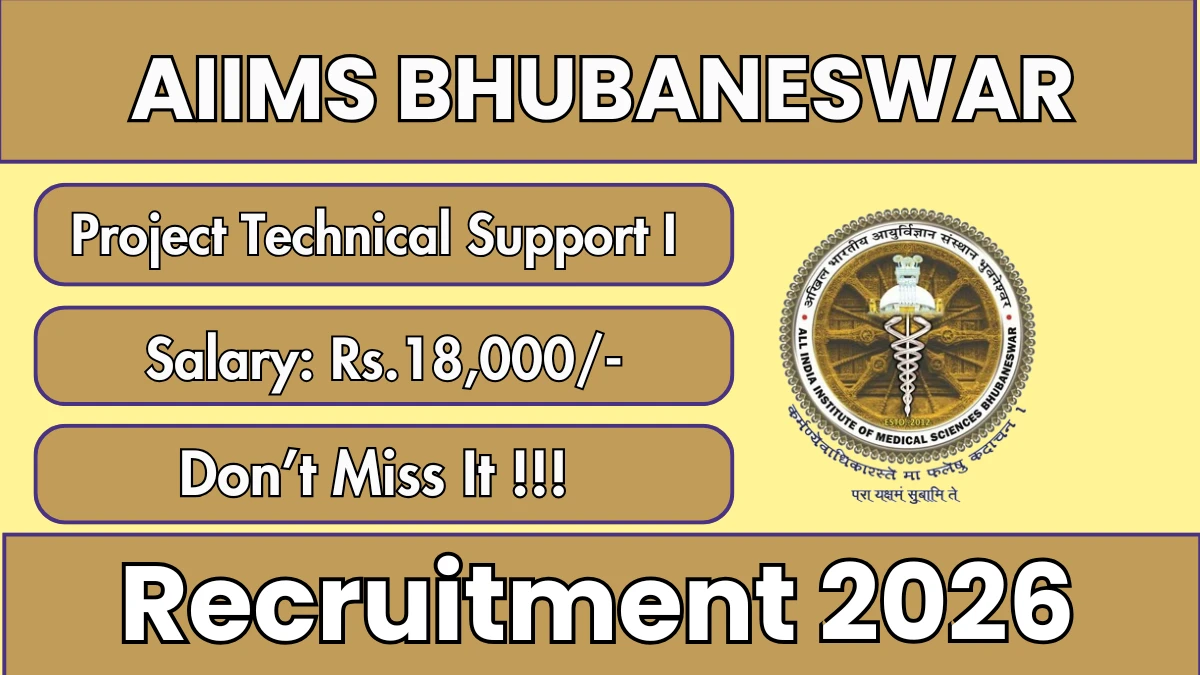All India Institute of Medical Sciences, Bhubaneswar (AIIMS Bhubaneswar) (AIIMS Bhubaneswar) Project Technical Support-I Notification 2026 has been released on the official website of AIIMS Bhubaneswar. A total of 1 vacancy has been announced through the AIIMS Bhubaneswar Project Technical Support-I Recruitment 2026.