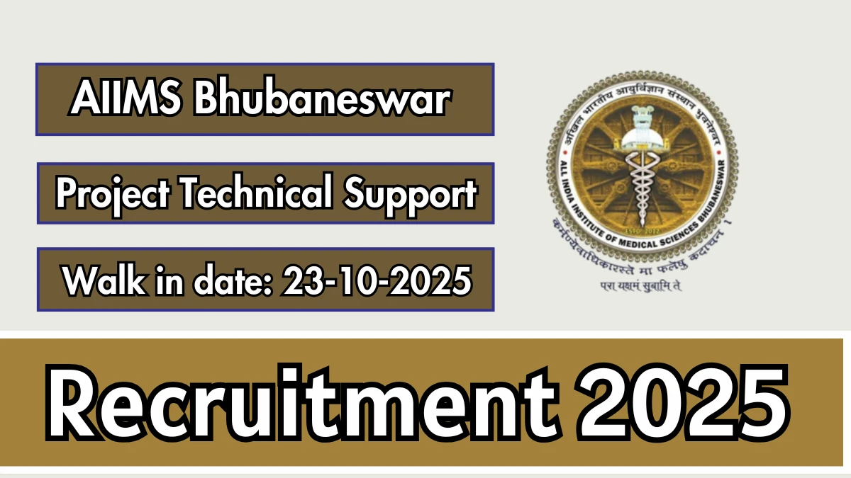 All India Institute of Medical Sciences Bhubaneswar (AIIMS Bhubaneswar) Recruitment 2025 for 01 posts of Project Technical Support II. Candidates with Any Graduate, Diploma, DMLT, MLT Can attend the walkin. The Walk-in on 23-10-2025. For detailed information please visit AIIMS Bhubaneswar official website, aiimsbhubaneswar.nic.in.