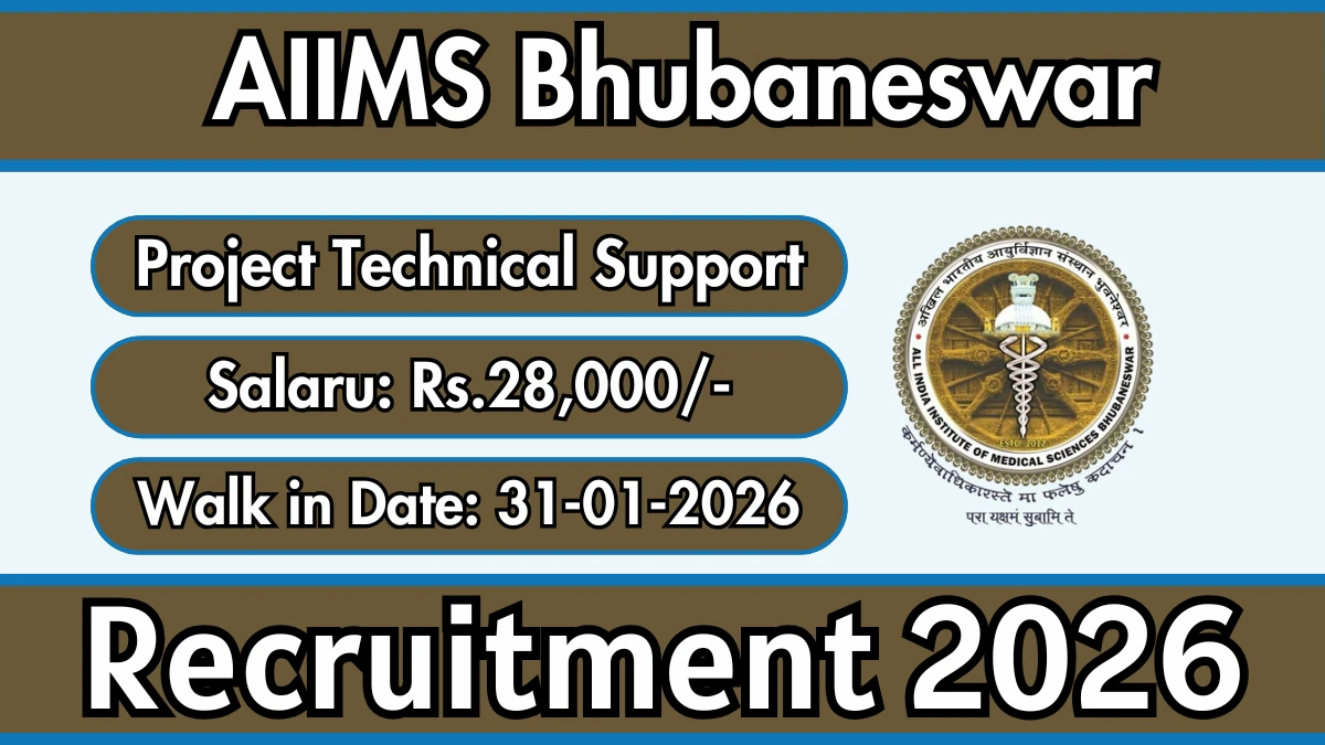 All India Institute of Medical Sciences Bhubaneswar (AIIMS Bhubaneswar) Recruitment 2026 for 01 posts of Project Technical Support III. Candidates with Any Graduate, M.A Can attend the walkin. The Walk-in on 31-01-2026. For detailed information please visit AIIMS Bhubaneswar official website, https://aiimsbhubaneswar.nic.in.