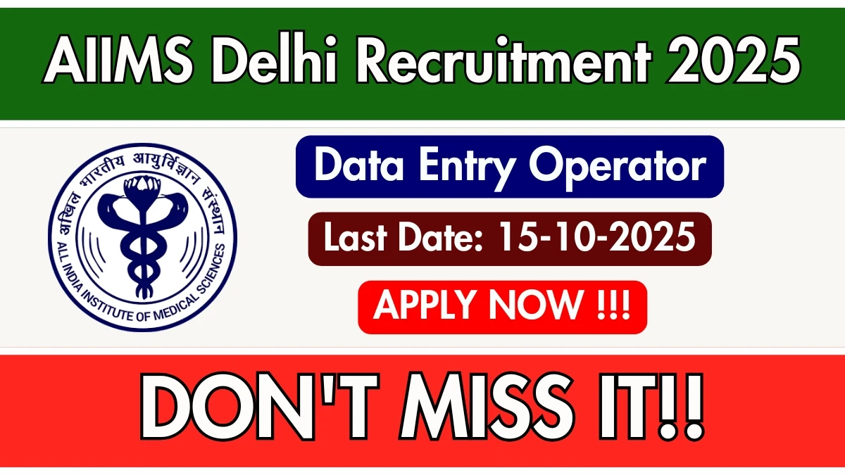 All India Institute Of Medical Sciences Delhi (AIIMS Delhi) has released an official notification for the recruitment of 01 Data Entry Operator Posts. Interested and eligible candidates can apply Online through the official AIIMS Delhi website. The last date to submit the application form is 15-10-2025. In this article, you’ll find the AIIMS Delhi Data Entry Operator Posts recruitment details, including eligibility criteria, age limit, salary structure, selection process, application steps, and direct links to the official notification and Online application form.