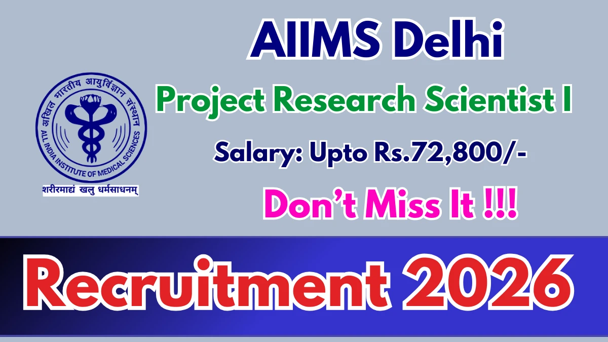 Candidates who meet the eligibility criteria can apply online for the AIIMS Delhi Project Research Scientist-1 (Non Medical) Recruitment 2026.